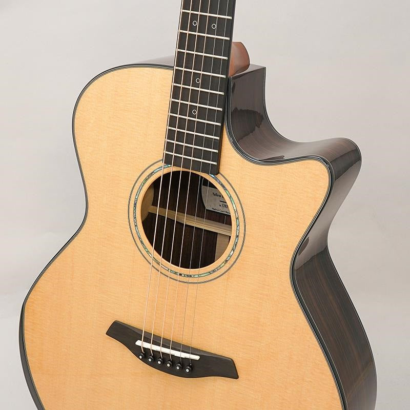 The top is made of AAA grade Sitka spruce, and the back and sides are made of AA grade Indian rosewood.