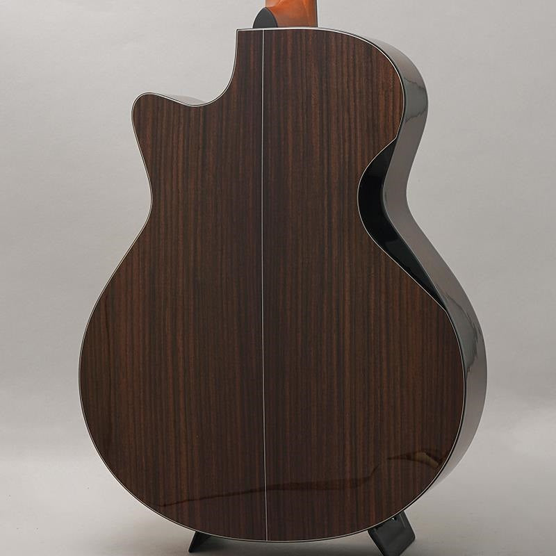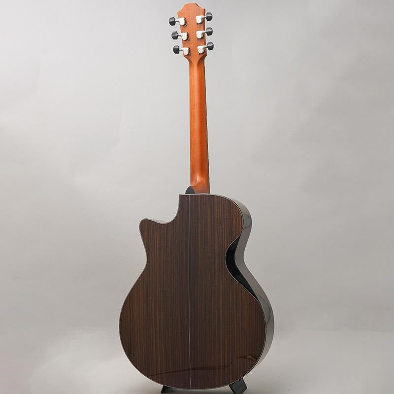 The top is made of AAA grade Sitka spruce, and the back and sides are made of AA grade Indian rosewood.