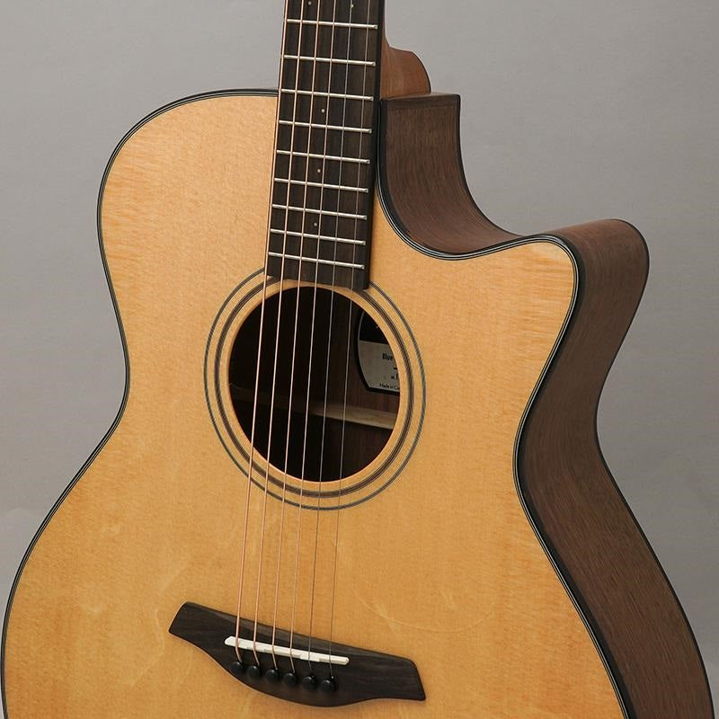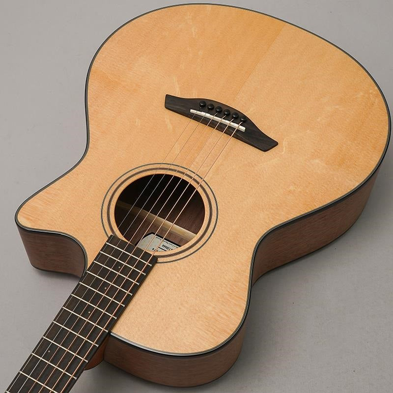 This instrument is a Grand Auditorium cutaway model from the Blue Plus series, which is well-known for its solid construction despite its reasonable price.