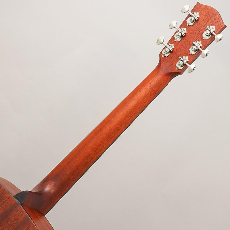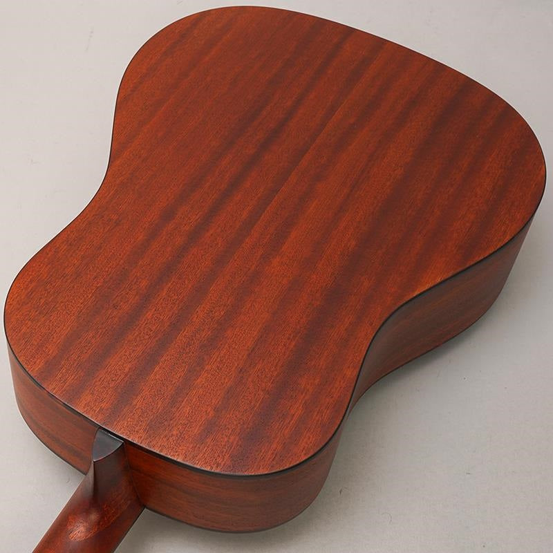 It features authentic material specifications, including a solid Sitka spruce top, solid Sapele back and sides that produce a rich midrange, a mahogany neck, and an ebony fingerboard.