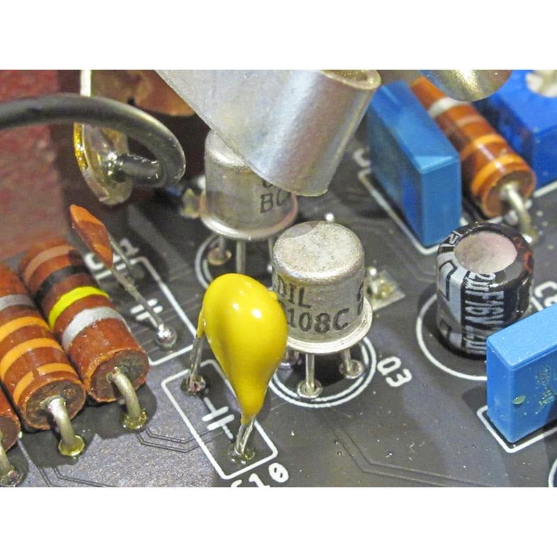 It uses two germanium transistors and two silicon transistors, allowing you to enjoy the glossy, crisp AC125 germanium sound and the BC108 silicon sound, which has a wide range of tones from boomy and dark tones to high-gain tones with a crackling top end.