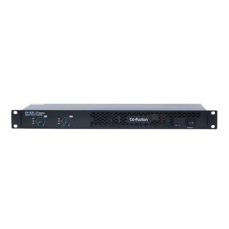 The Cofusion CF Series power amplifiers are 1U-sized 2-channel/4-channel digital power amplifiers. They are suitable for a wide range of applications, from fixed installations to temporary sites. The CF2.3 is suitable for driving 8-inch class (150-200W class) speakers.