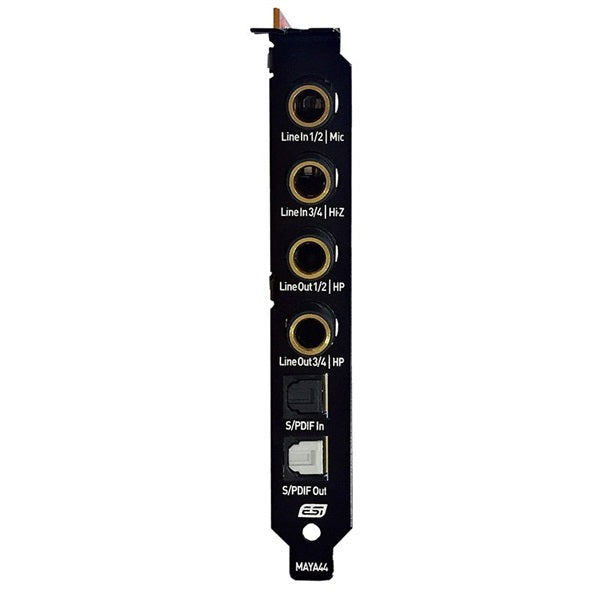 ●Main features・24-bit/96kHz compatible 102dB A/D converter・24-bit/96kHz compatible 108dB D/A converter・4-channel simultaneous input and 4-channel simultaneous output・Microphone preamp with +48V phantom power・Hi-Z input jack for direct guitar input・S/PDIF optical input and output jack・Full duplex recording and playback・Headphone jack・Latest PCIe interface technology from ESI・Optimized for the latest audio streaming, recording and playback applications・Fully enhanced DirectWIRE with virtual channel support・Low latency EWDM driver: Compatible with MME, WDM, DirectSound and ASIO 2.0・Compatible with Windows Vista to 10 (32/64bit) and Mac OS X