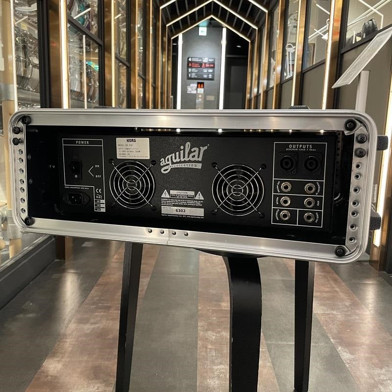 The DB750 is a hybrid bass amp head manufactured by Aguilar, featuring an all-tube preamp section and disc-lead MOSFETs for clear, powerful sound.