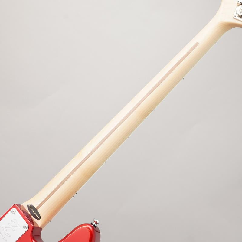 Responding to modern needs, this custom guitar features a master volume with a pickup balancer, a popular candy apple red matching headstock, a tortoiseshell pick card, and a metal control panel.