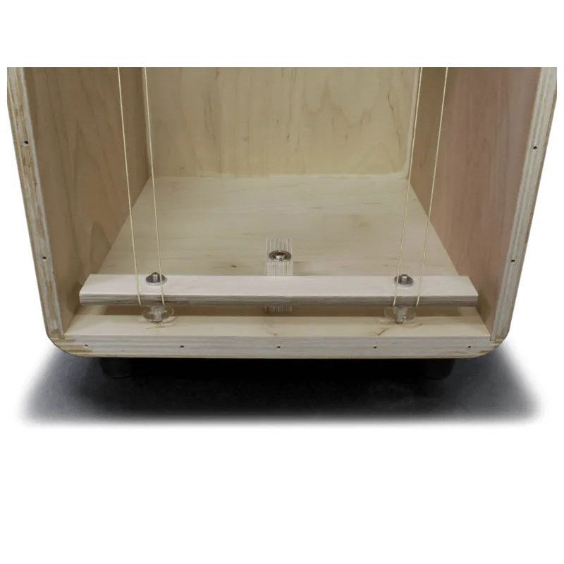 The Finnish birch striking surface offers exceptional response, making it ideal for delicate playing. Its responsiveness, capturing every note played with each finger, often amazes listeners, who exclaim, "I can't believe it can pick up so much!" The striking surface and strings are closely connected, resulting in a crisp sound that suppresses unnecessary string vibration (buzz) while maintaining high response. A resonant string tuning knob is located on the bottom, allowing you to adjust the string resonance without the need for tools. By twisting the knob, you can adjust the sound from a harsh, buzzing sound to a percussive sound that makes the most of the box's resonance.