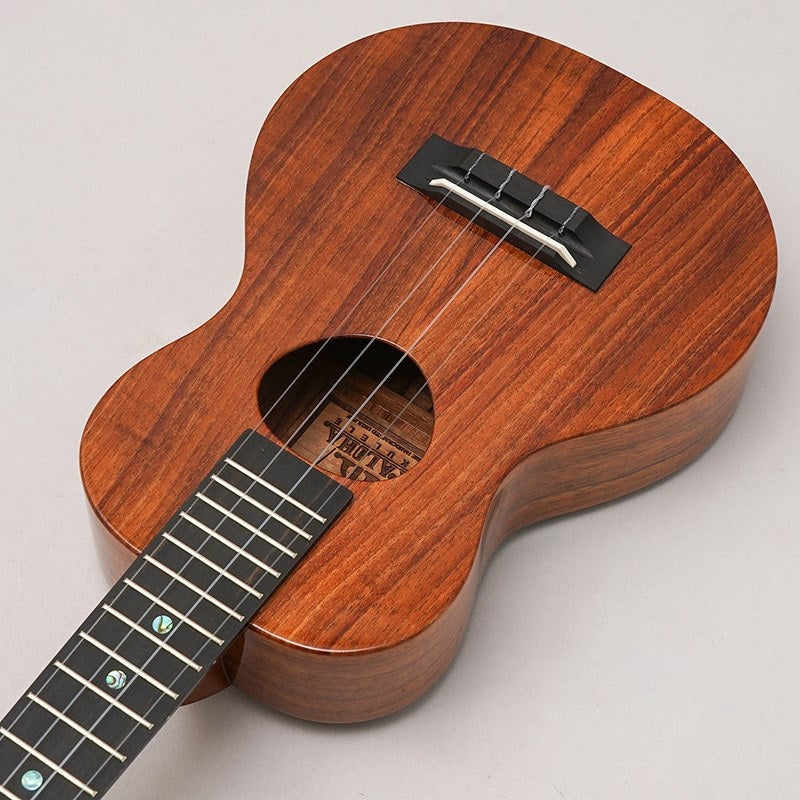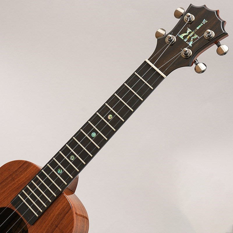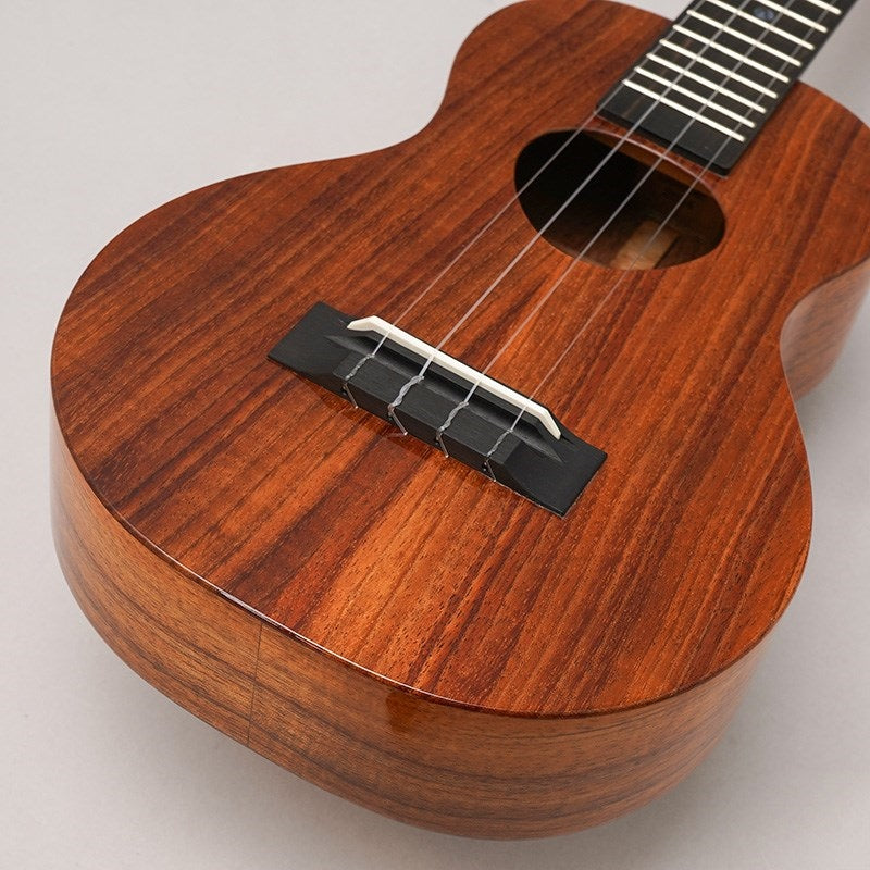 This KCM-00 features an all-Hawaiian solid koa body, ebony fingerboard and bridge, reliable gear pegs, and a koa plate inside the body. The beautiful gloss finish gives it a sense of solidity and elegance. The body size is a versatile concert shape that is easy to use for both accompaniment and solos. The high fret spacing is not as narrow as a soprano, and the tension is not as strong as a tenor, making it recommended for those who want to play casually.