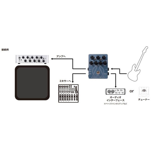 ・Alpha...punchy, tight and very clear sound ・Omega...rough and raw sound ■Equipped with a parallel output that can be connected to an audio interface as a tuner or reamp.