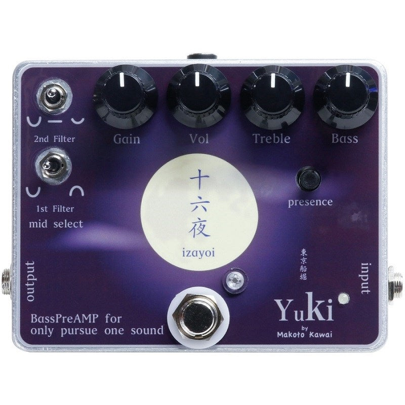 The Yuki Bass Sound System series is designed to provide bassists with specialized equipment tailored to their needs. Its first product, the "IZAYOI" bass preamp, is designed to deliver the basic sound desired by professional musicians. This preamp features a moon motif and offers simple yet highly functional sound adjustments. "IZAYOI" is ideal for studio recording and live performances. Its quality is particularly evident in a wide range of genres, including jazz, blues, and rock, and its flexibility makes it suitable for a wide range of users, from professional musicians to amateurs. This model, devoid of convenient features, is dedicated to creating the basic sound and represents the culmination of Yuki Bass Preamp developments in recent years.