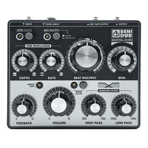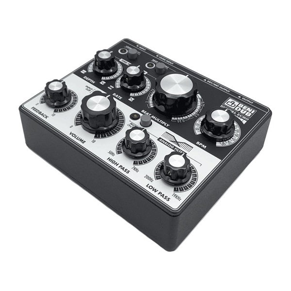 The DIGITAL ECHO Desktop Delay is a delay/echo effect that can be used with dub sirens and other instruments, as well as in live performances and music production. Its DPS (Digital Signal Processing) delay effect is uniquely characterized by its ability to manually adjust various filters to adjust the delay effect tone and feedback in real time.