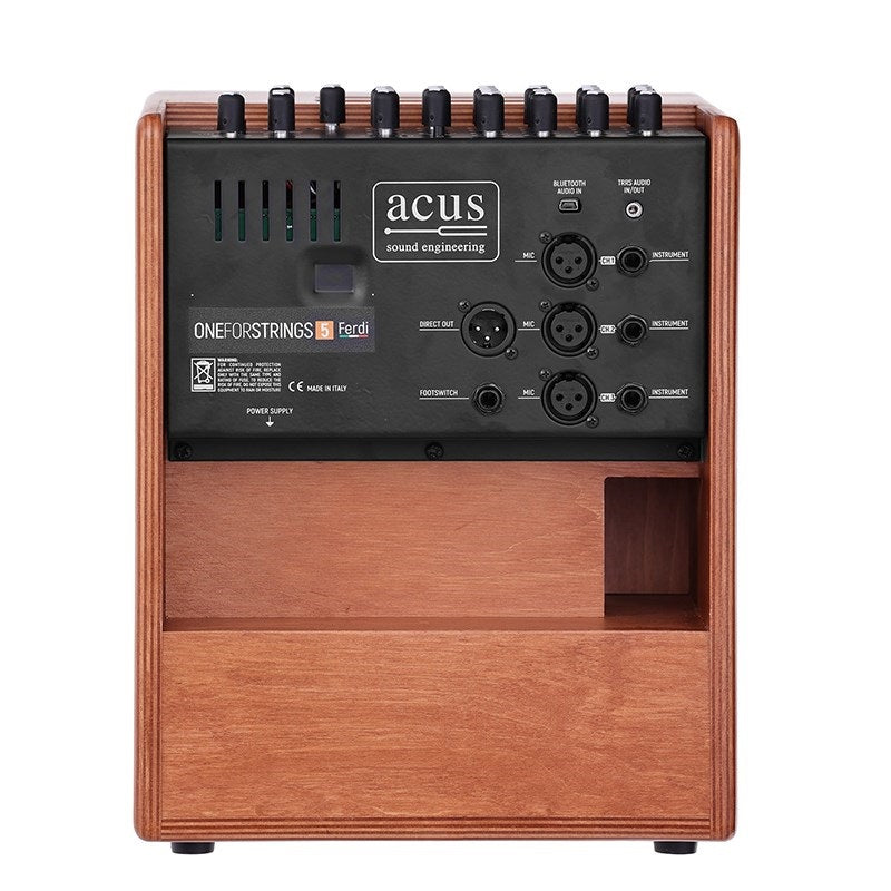 ONE FOR STRINGS 5Ferdi is a compact 70W band amplifier with three independent instrument and microphone inputs and one AUX input (TRRS audio in/out e Bluetooth audio in).