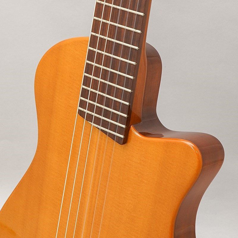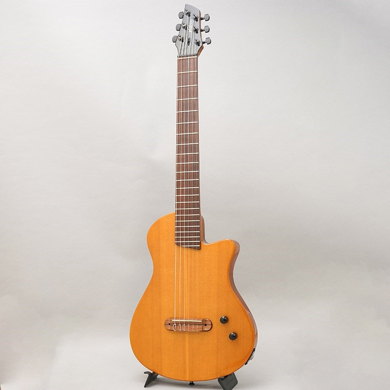 The Journyman Nylon is a so-called electric guitar with a standard tuned 25.5-inch scale and a nut width of approximately 52 mm.