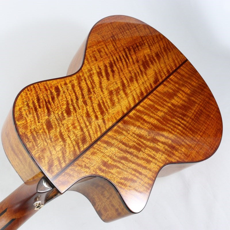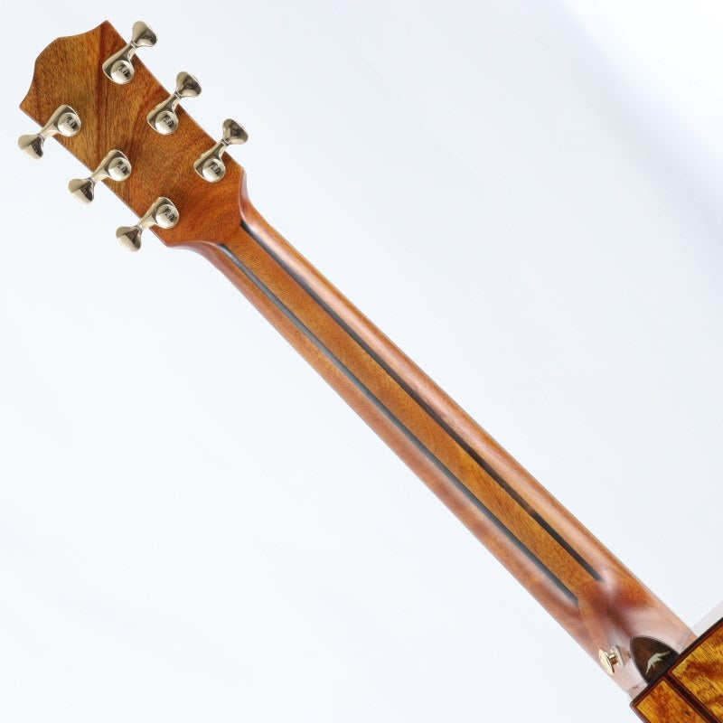 Top: Solid Spruce Sides: Flame Mobingy Back: Flame Mobingy Neck: Mahogany with 2 Amara Ebony Skunk Line Fingerboard: Amara Ebony Number of Frets: 20
