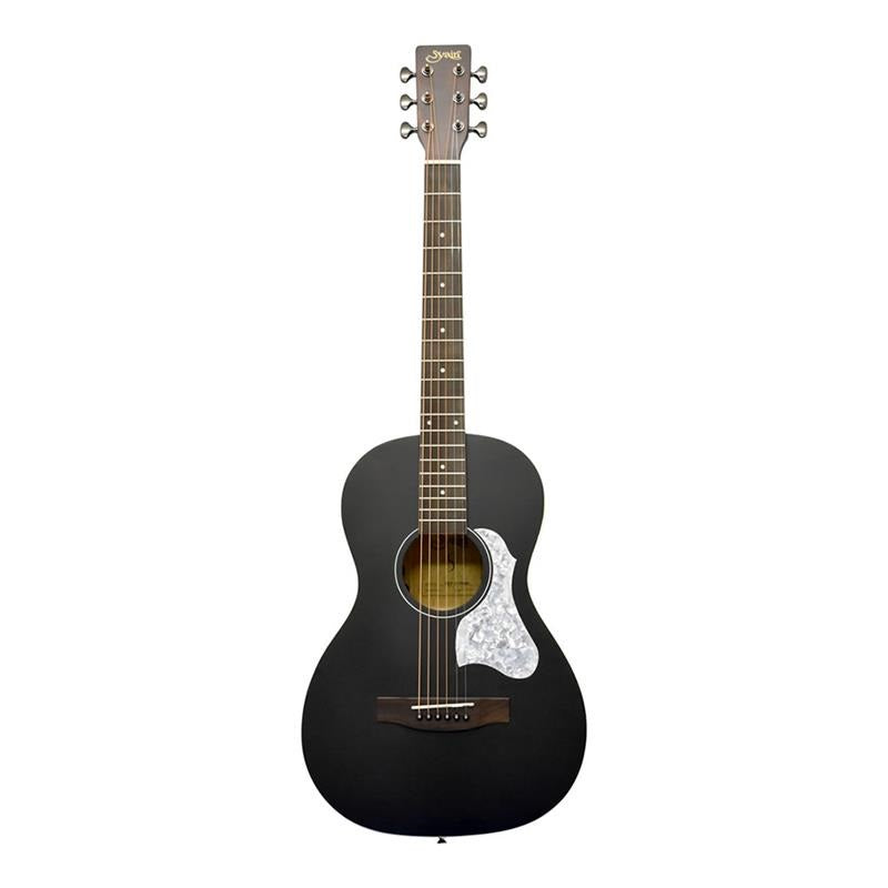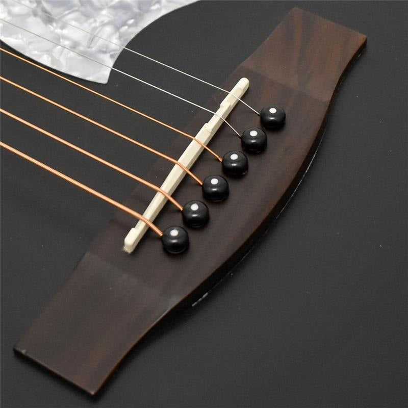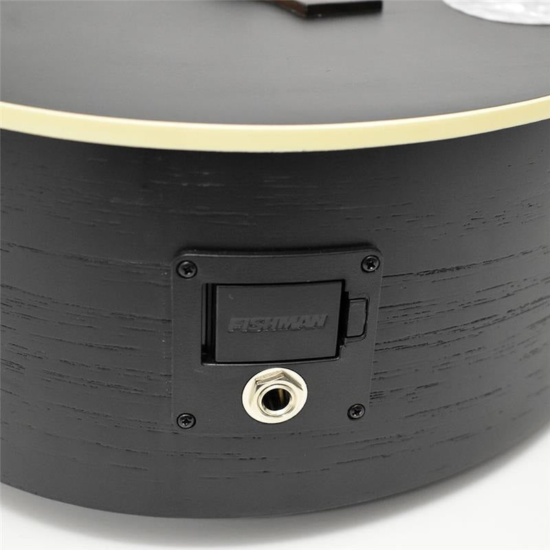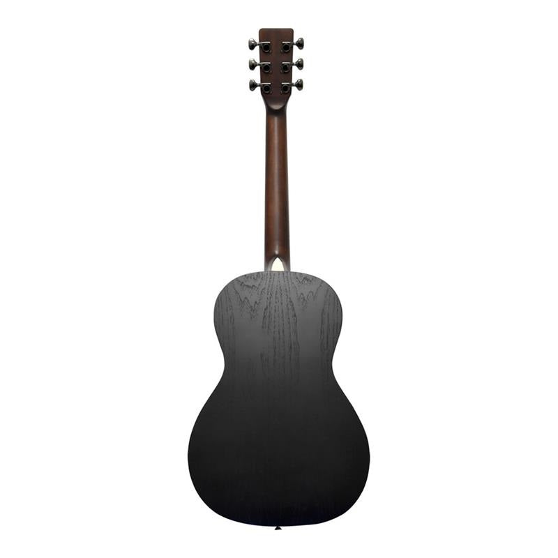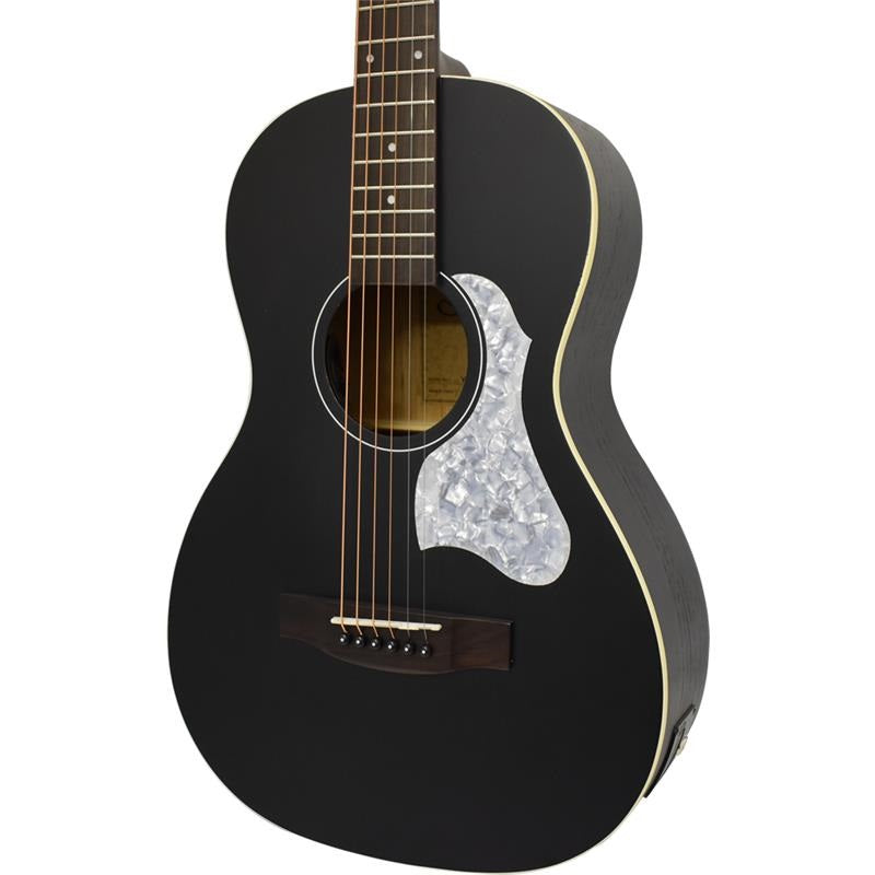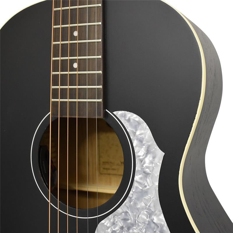 This modern-style electric acoustic model features a warm, nostalgic head shape, gunmetal black tuning keys, and a white pearl pickguard that accentuates the body color, making it a truly unique piece.