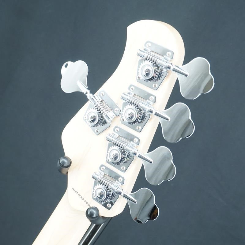 This guitar features powerful humbucking pickups, the source of the Stingray sound, and a two-band active preamp (treble/bass) that allows for a wide range of tonal variations. The neck is made of maple with a nut width that is easy to play even for beginners, and it features a highly rigid six-bolt mount neck joint. It also features an easy-access truss rod adjuster for easy neck adjustment. (This is a 5-string model.)