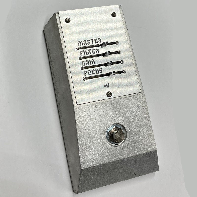 The distinctive enclosure, designed by Obstructures, combines the tastes of "utilitarianism," "elegance," and "neo-brutalism" with respect for the iconic fuzz pedals of the 60s and 70s.