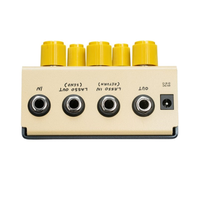 The Lasso comes with a built-in, ultra-powerful overdrive that exudes the signature Pardner sensibility. You can swap the order of the Pardner with the fuzz section, or even route them in parallel. Add a sparkling low-gain rumble to enhance the wild fuzz for even more definition, or envelop everything in gain for a super-saturated wall of sound. You can also master storm-like noise and oscillation. The Pardner is essentially a 2-in-1 overdrive and fuzz pedal, making it incredibly versatile.