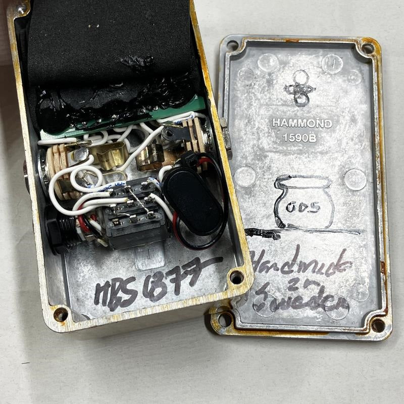 The HBOD is an overdrive pedal that features overwhelming dynamic response, even within a pedal system. With headroom and frequency response reminiscent of an old, small amp, it can produce the tone of a large amp recorded with a small amp. It can also be placed anywhere in a complex pedal system, allowing it to function optimally.