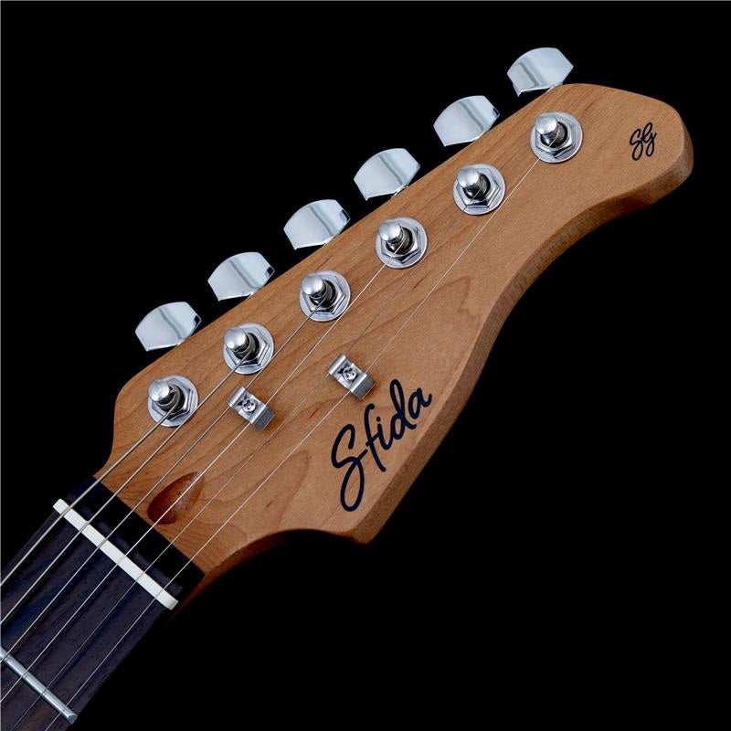 The pickups are designed exclusively for the Sfida brand. They have wider coils and larger magnets than single-coil pickups, producing a thick, punchy sound.