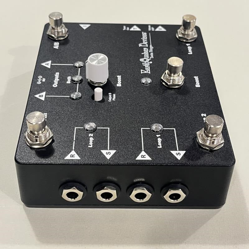 It features true bypass, two effect loops with our proprietary Flexi Switch, an output using an isolation transformer that can be selected via AB-Y, a buffered tuner output, a clean boost of up to 20dB, a volume control that can be controlled with an external expression pedal, and a high-headroom output buffer, making it easy to manage all the pedals on your pedal board in a compact space.