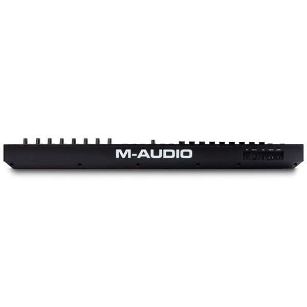 The M-Audio Oxygen Pro 49 features a best-in-class 49-note semi-weighted keyboard with velocity and aftertouch, 16 RGB-backlit, velocity-sensitive and assignable pads with an assignable arpeggiator and note repeat function, eight assignable knobs, and nine assignable faders—all the features you need to get the most out of the included virtual instruments and DAW software.