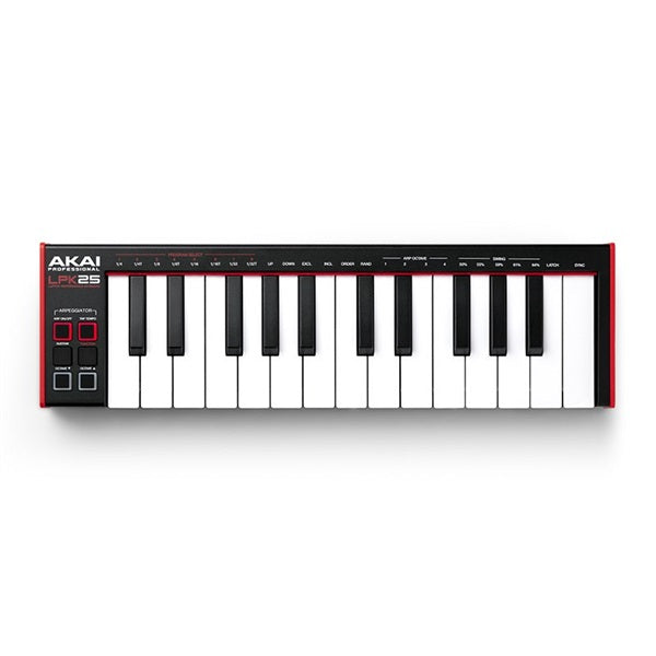 The LPK25 is a functional companion for piano and keyboard musicians. It's a sophisticated, two-octave, 25-key MIDI keyboard controller with synth action. It's responsive and compact, making it easy to compose and perform even in tight spaces.