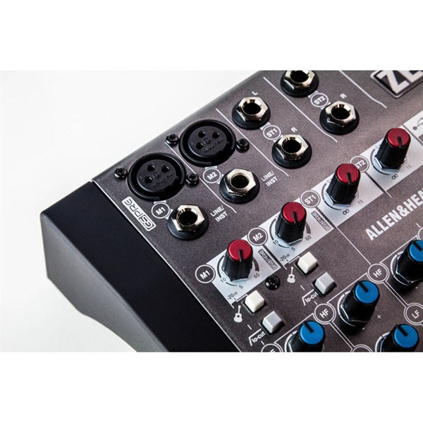 ZEDi-8 features a new preamp design by analog design guru Mike Griffin, based on the preamp found in the acclaimed GS-R24 analog recording console. Named GSPre, it delivers exceptionally low noise performance, ample headroom, and the warmth and depth you expect from Allen & Heath analog mixers. For tone correction and shaping, the MusiQ EQ has been carefully tuned for responsiveness and precision, allowing you to easily adjust the sound of your input source.