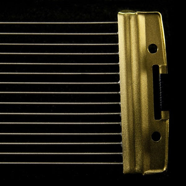 This snare has each individual resonating wire welded to both ends while it is tuned. Its natural tension balances the sound of the drum. Its larger contact area with the head than a coiled snare provides a more sensitive response and reduces noise caused by resonance. It can be attached to any strainer, whether cord- or tape-attached.