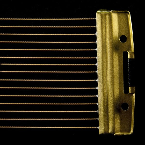 This snare has each individual resonating wire welded to both ends while it is tuned. Its natural tension balances the sound of the drum. Its larger contact area with the head than a coiled snare provides a more sensitive response and reduces noise caused by resonance. It can be attached to any strainer, whether cord- or tape-attached.
