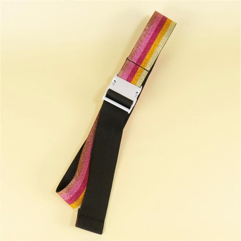 The vibrant PVC (transparent vinyl) pocket and the colorful rainbow glitter belt add a pop of color and are a perfect match.