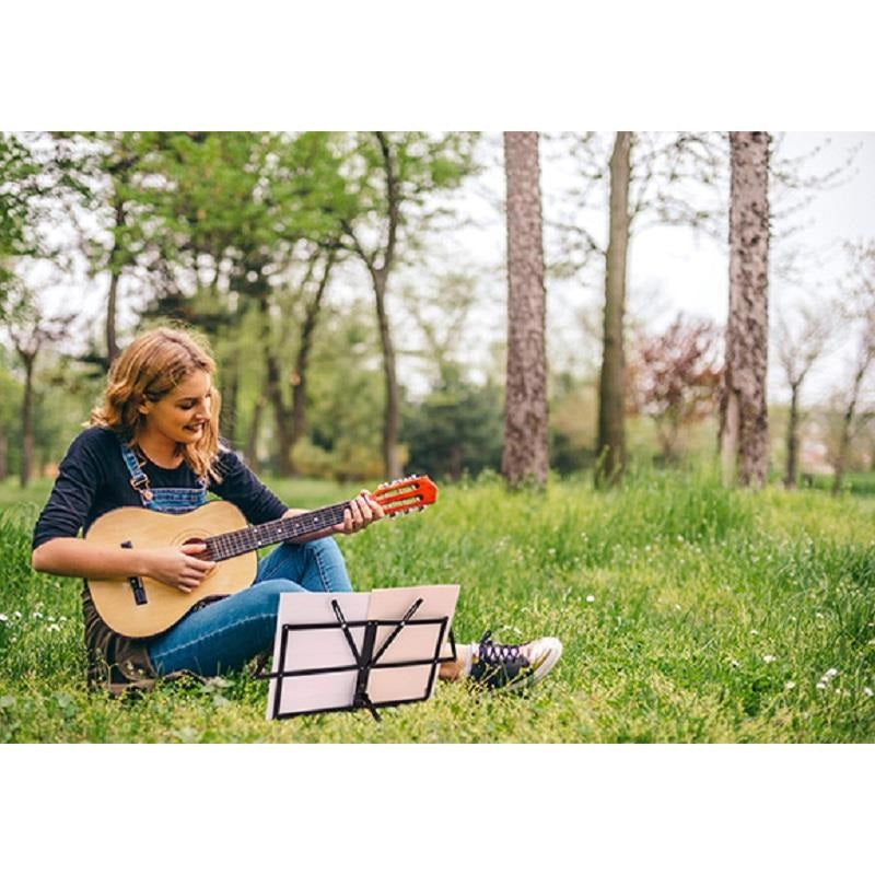 180-degree adjustable leg support allows you to freely adjust the angle of the music stand. Non-slip rubber feet provide stability and prevent scratches on the table surface.