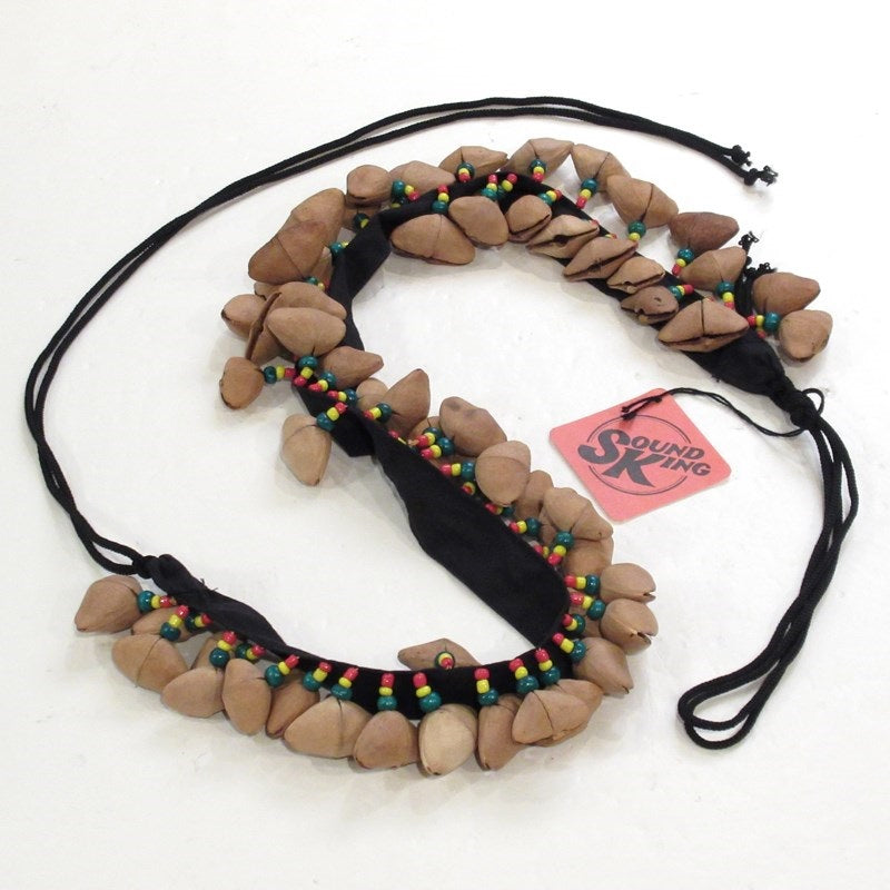 This rattle-like instrument is made from nut shells tied together like strings. It can evoke the sounds of rustling plants, flowing water, and even the presence of something. It's perfect for creating soundscapes.