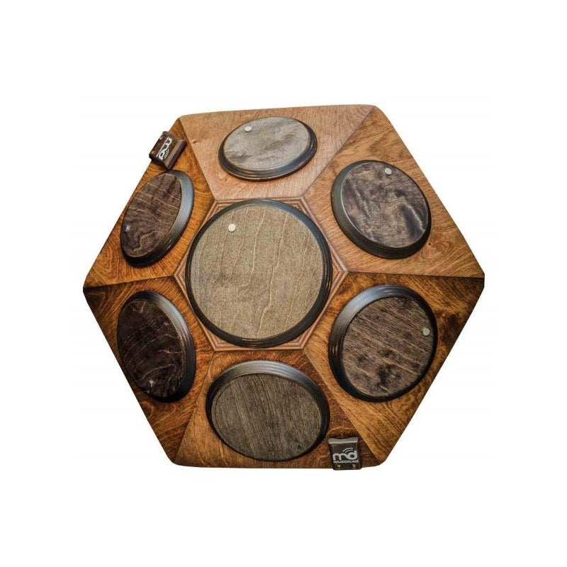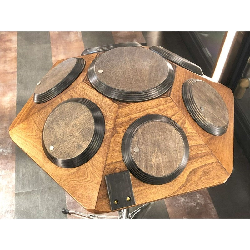 All seven striking surfaces are made of thin wooden boards, one of which has an on/off snap on the back, and two on the sides have castanets. Furthermore, tuning can be achieved by changing the position of the magnets attached to each striking surface.