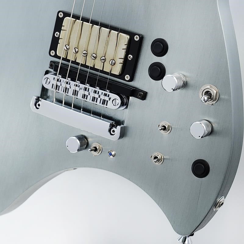 Its form breaks the traditional concept of the electric guitar while incorporating the latest style and playability, and the sound it produces boasts overwhelming sustain and a wide range.