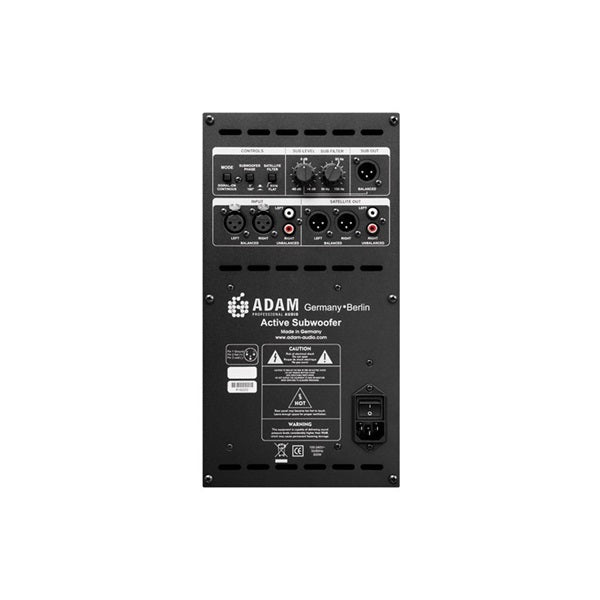 All ADAM subwoofer series (Sub8 to Sub2100) are equipped with both balanced (XLR) and unbalanced (RCA) inputs and outputs, and are equipped with a control panel that allows them to be adapted to any acoustic environment.