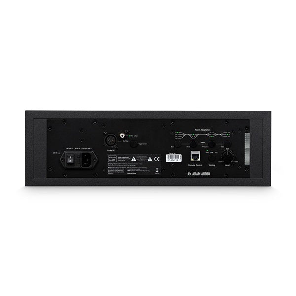 The horizontally oriented A44H fits into a 19-inch rack and can be placed on a rack shelf or above or below a display. This new design allows the A44H to be used as a center speaker for immersive audio or 3D audio playback.