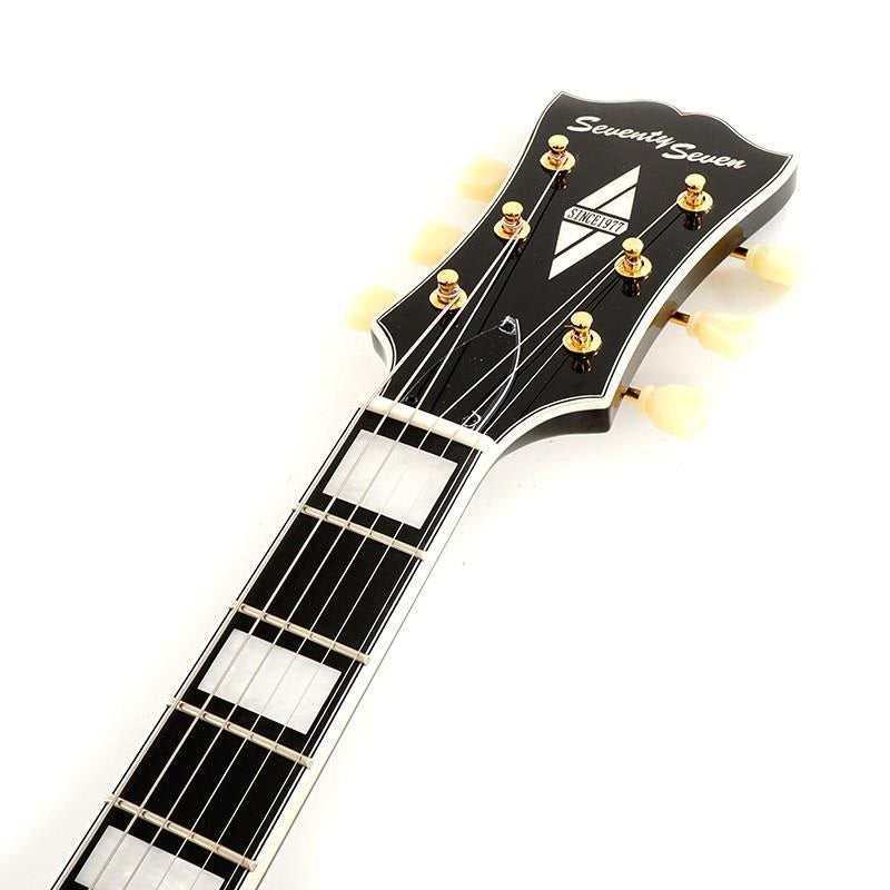 The headstock features an original head inlay with a stylized 77 design. Combined with the binding, it exudes a luxurious feel not found in the standard model.