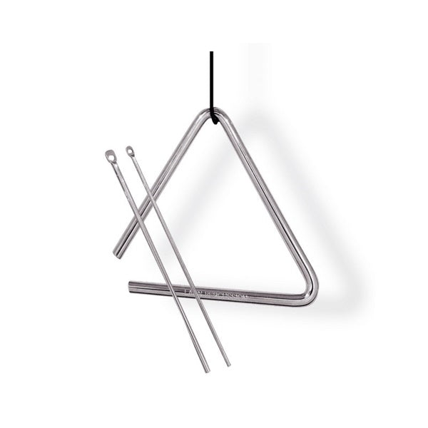 The LP Pro Triangle is crafted from a special iron alloy, carefully finished, and chrome-plated for a sparkling sound. It comes with two strikers: a thinner one for delicate playing and a thicker one for a louder sound. It also includes a nylon hanging cord.