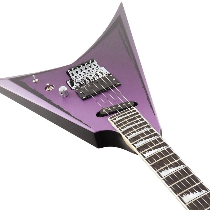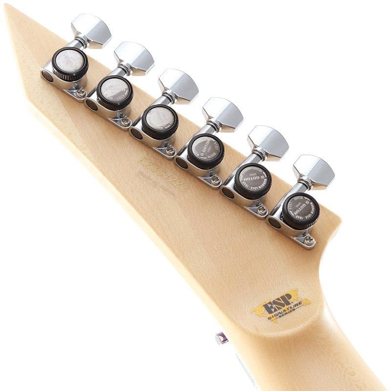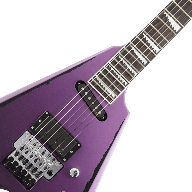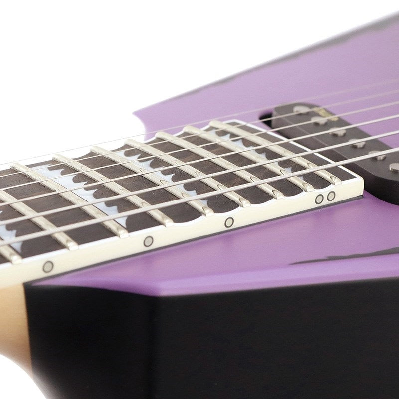 The ALEXI RIPPED follows in the footsteps of previous signature models, but is the first guitar to feature a neck-mounted pickup. The body features an offset V-shape, a hard maple neck that runs from the center to the end, and an alder body. The fingerboard is made of ebony with distinctive sawtooth inlays. Frets 20-24 are scalloped, allowing for smooth choking and vibrato on the higher frets.