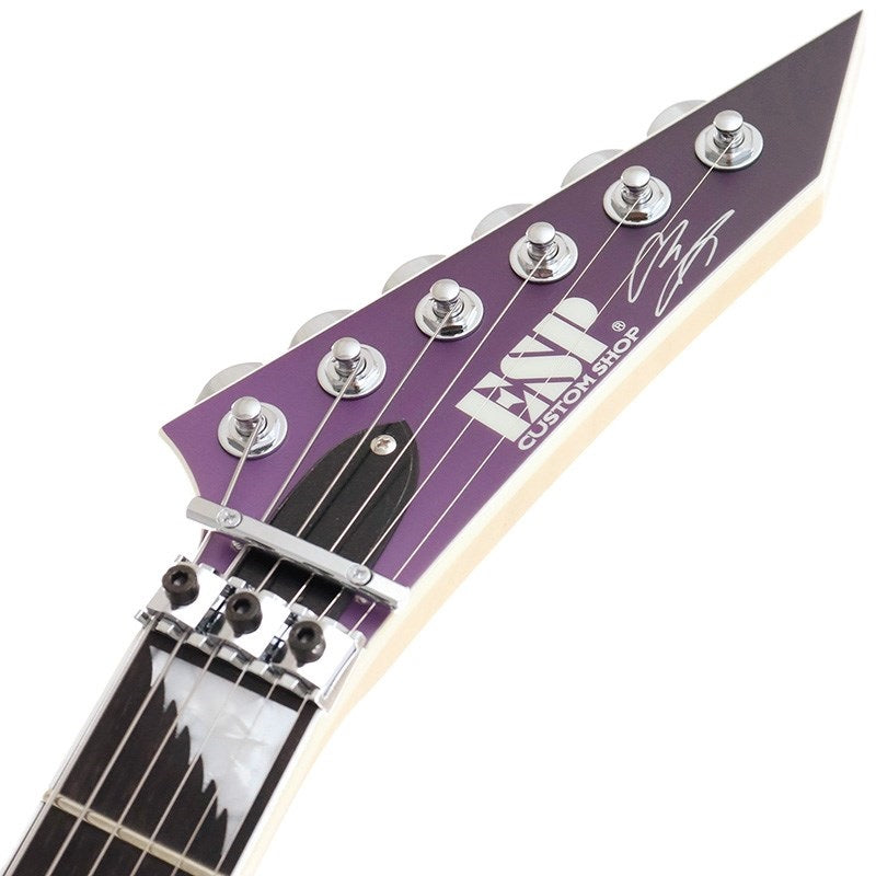 The guitar features an EMG HZ-FH2 pickup in the bridge position and an EMG HZ-S2 pickup in the neck position. It also features an ESP MM-04 preamp with a maximum boost of +18dB. The body top is finished in purple fade satin, while the back and sides are black satin.