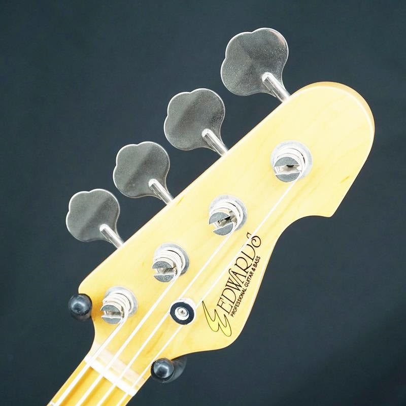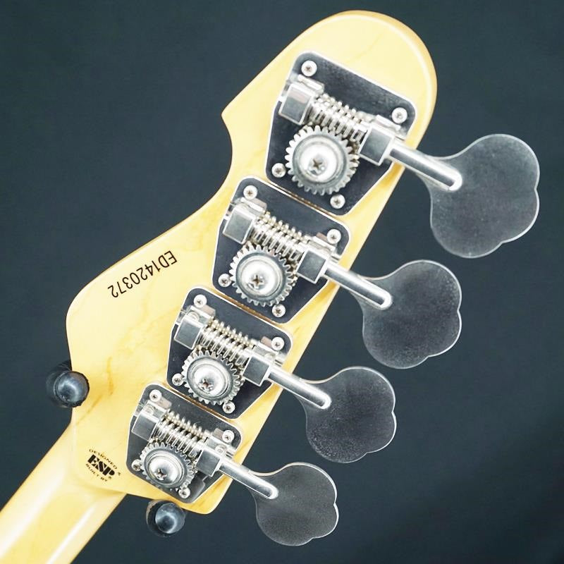 This E-AP-123 Kazuhiko features the nostalgic, elegant logo on the headstock, a design often seen on Edwards guitars in the '90s. It features Seymour Duncan SMB-4A pickups, the same as ESP models, and a GOTOH 404BO-4 bridge pickup. The 3-band EQ allows for a wide range of tones. This stylish model boasts a charcoal/black finish that showcases the wood texture of the body.