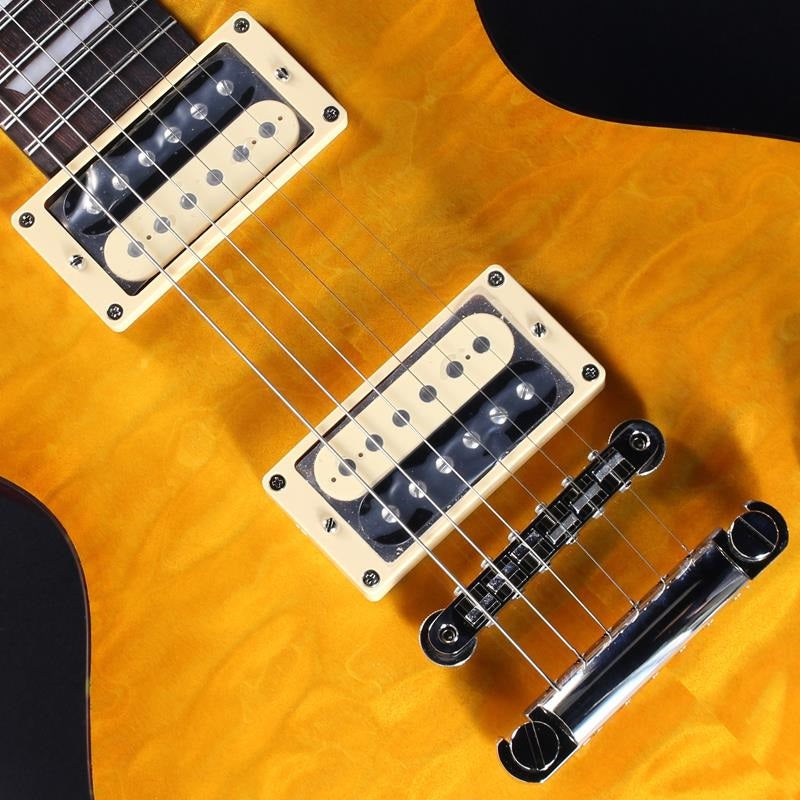 A classic LP style with a quilted maple body top laminated! The set neck is attached to the body by experienced technicians, who carefully adjust and bond it by hand. The traditional glue, hide glue, is often reserved for custom-made guitars. The precise neck pocket is carefully crafted, and repeated fine-tuning ensures the sweet spot for string vibration transmission is precisely achieved.