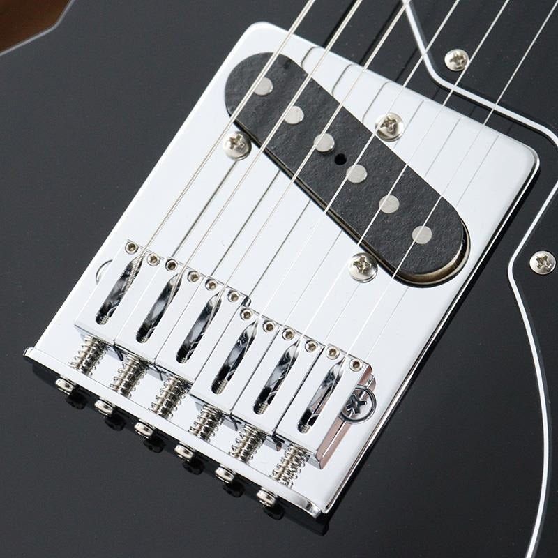 This "DELTA-C" is a TL model featuring an alder body with F-holes and chambering, a maple neck with a rosewood fingerboard, and a well-balanced C-round neck profile, 305R fingerboard radius, and a heelless joint for a modern feel and a vintage look.