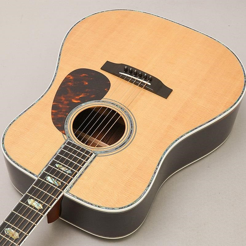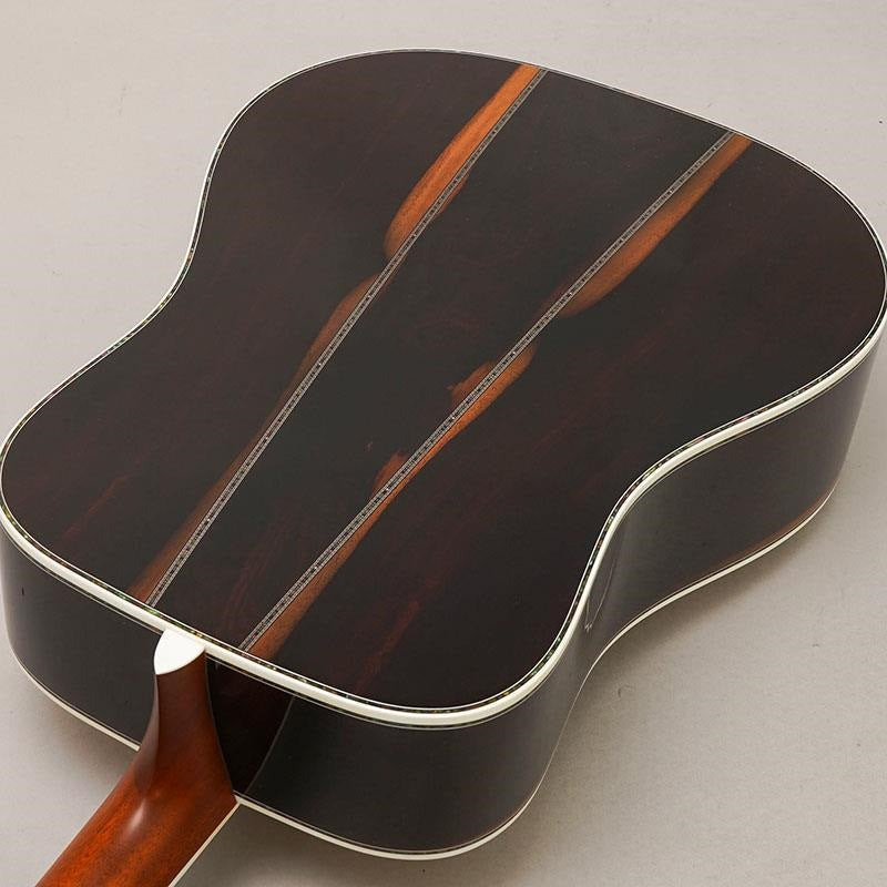 This luxurious model features a 3-piece side back made of Jacaranda, a rare and luxurious material, and is adorned with gorgeous materials and decorations such as a vertical logo, hexagonal inlay, and abalone trim, which are the envy of acoustic guitar fans.
