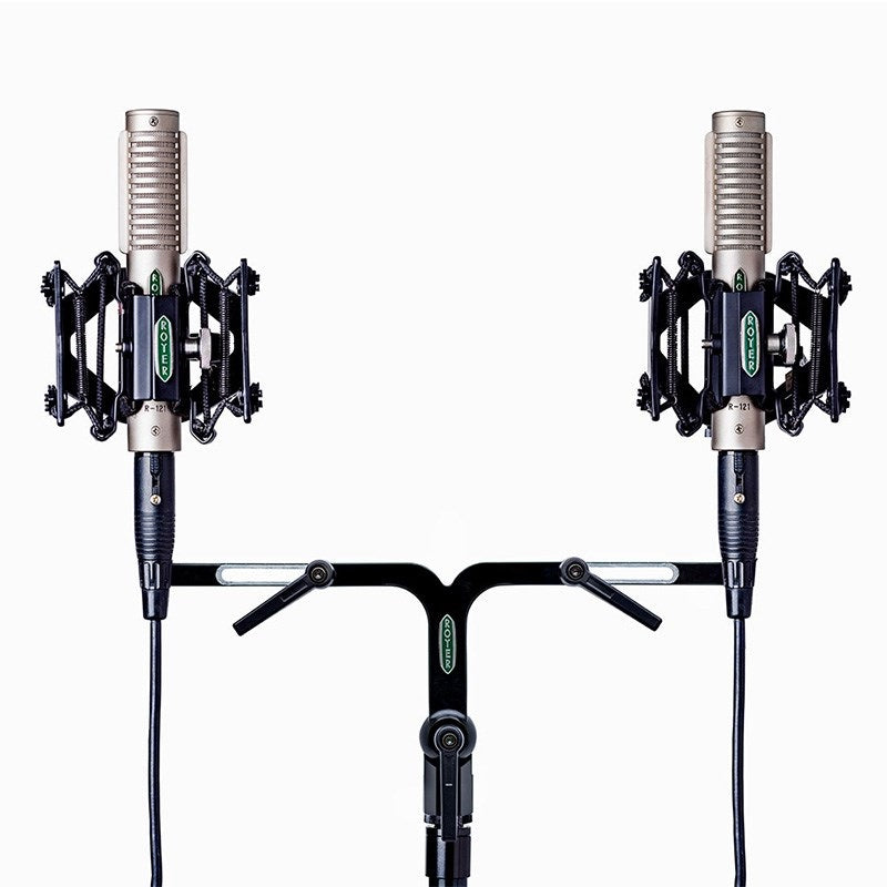 FlexBar's two movable arms offer a wide range of microphone placement options for a variety of creative uses, including the traditional Blumlein pair arrangement, with two bidirectional pattern microphones positioned 90 degrees from each other, or spaced stereo positions.