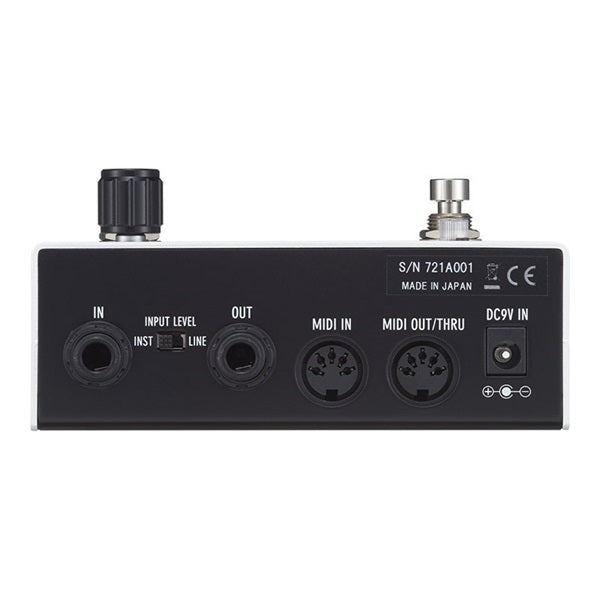 Terminals: 1/4-inch standard phone jack x 2 (input, output), DC9V input jack (for connecting AC adapter), DIN 5-pin connector x 2 (MIDI IN, OUT/THRU)
