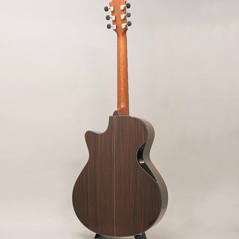 The top is made of AAA grade Sitka spruce, and the back and sides are made of AA grade Indian rosewood.