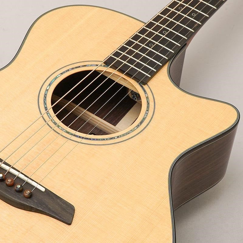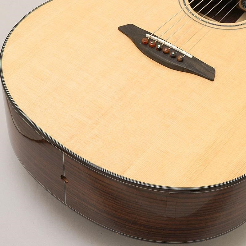 The design, which has been carefully crafted down to the smallest detail, features a thin abalone rosette, eclipse-type position markers, and tortoiseshell binding and bridge pins, giving it an elegant and calm European feel.