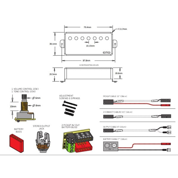 The EMG 66-7H is designed for the neck using the concept of the EMG 57-7H, and uses the same Alnico 5 magnets and ceramic pole pieces as the EMG 57-7H.
