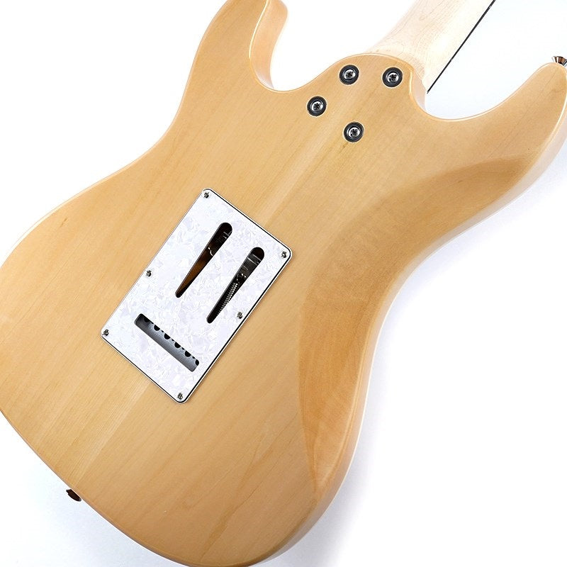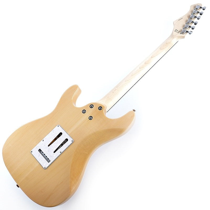 The Aria Evergreen is based on a standard style. It's a model developed with the hopes of providing a long-lasting, durable tone. It features a vibrant flame maple finish. The SSH pickup layout and coil tap switch allow for a wide range of sound creation.